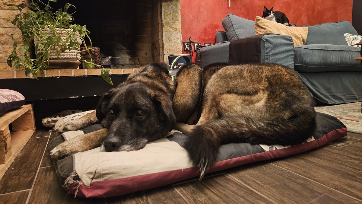 When you spend time with him, he is happy like a little child, and he shares that joy with you in a way that only he has. It's like he's telling you, "How glad I'm that we're doing things together." Antonis was once a very strong, very proud, and very confident dog, confident.