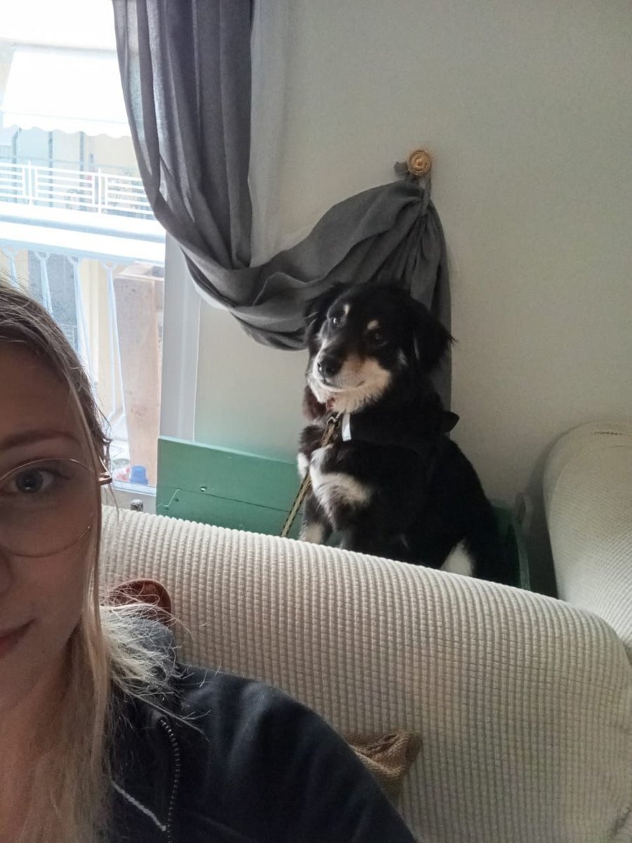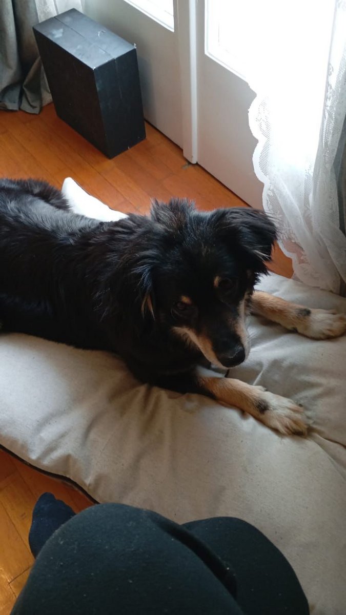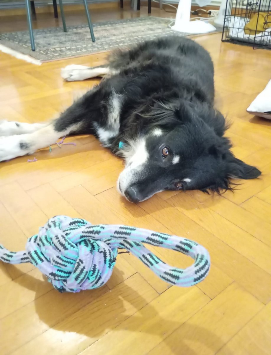 She learned in two weeks to go for a walk outside the vet, she always goes to the toilet outside because it's spotless, and slowly she started wagging her tail on the walk happily.