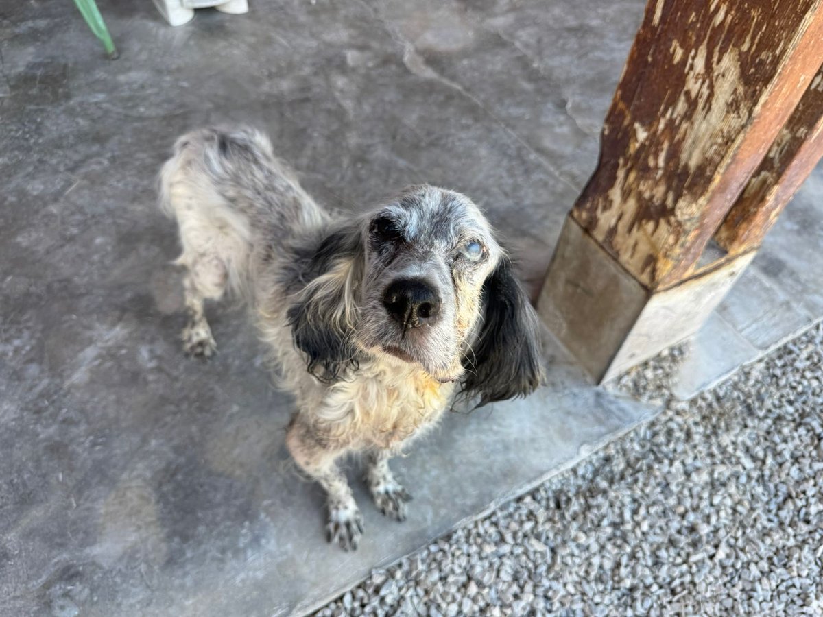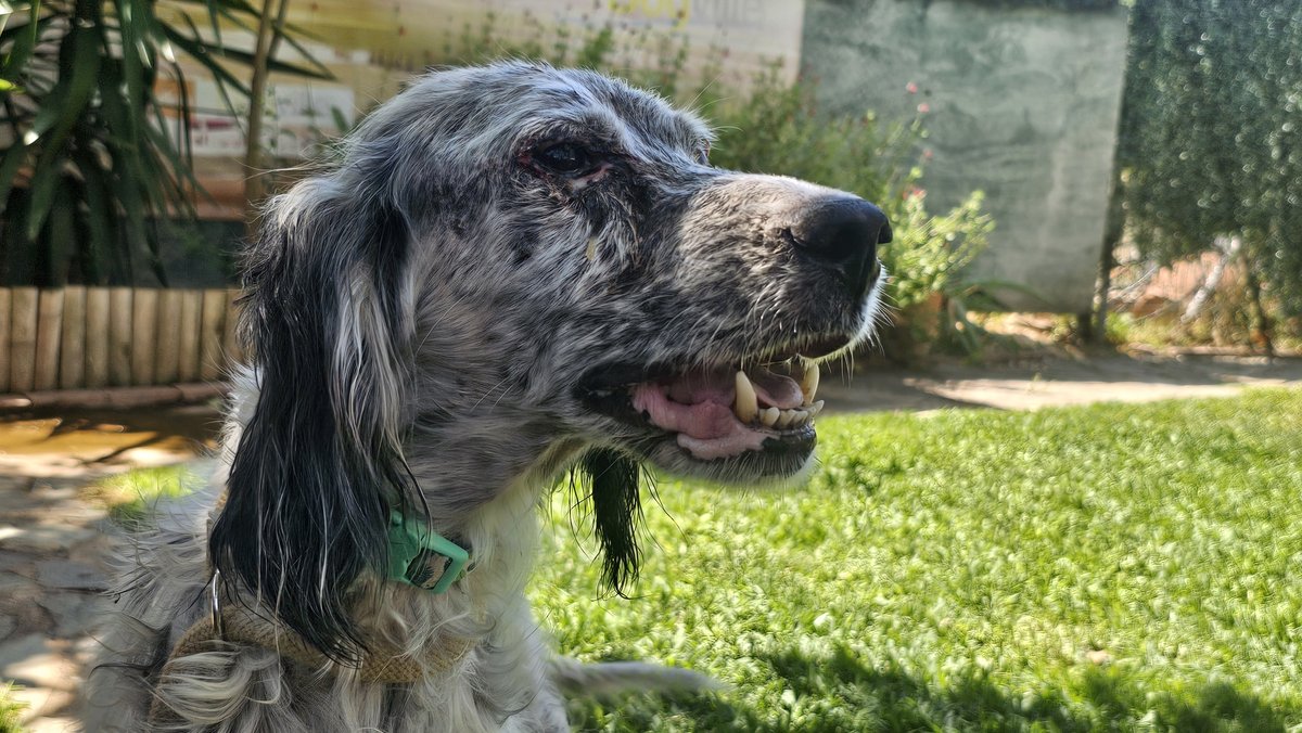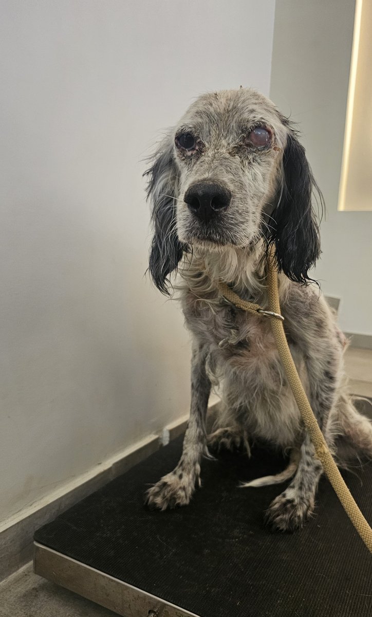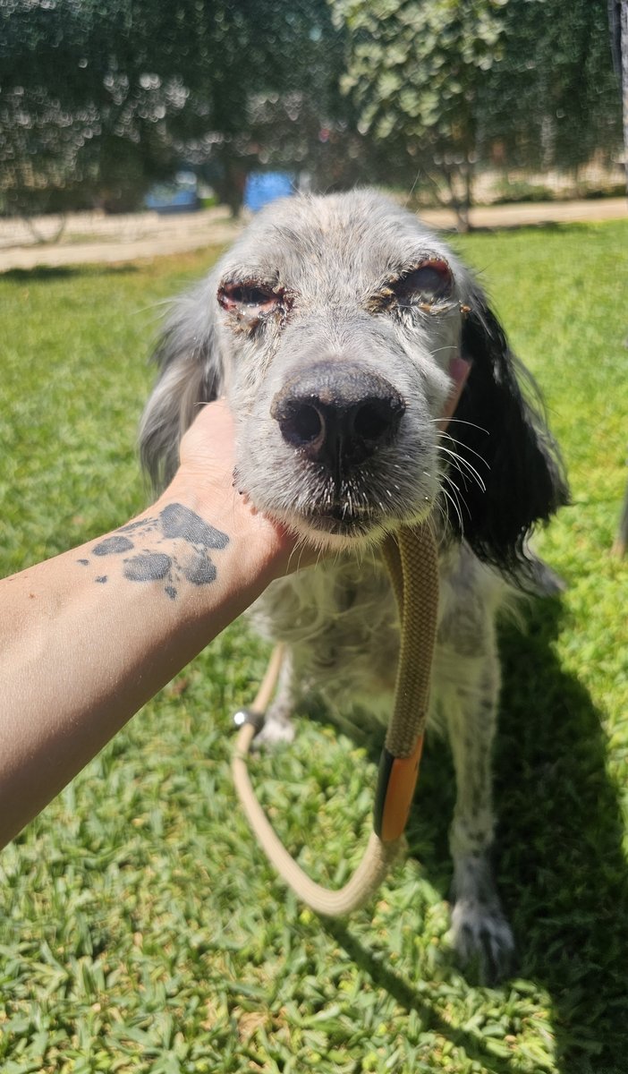 Ήρθε σε εμας ΓΕΜΑΤΗ τσιμπούρια και εξαθλιωμένη. Πάσχει από λεϊσμανίαση, και δυστυχώς έχει χάσει ήδη το ένα της μάτι. Τo άλλο πιθανότατα να σώζεται. Δεν βλέπει καλά, αλλά είναι ορεξατη, χαρούμενη και έχει όλα τα χαρακτηριστικά της φυλής της. Είναι αγαθή, σε εμπιστεύεται, περπαταει με την ουράτ ης κουνιστή και την μύτη κάτω, και είναι πάρα πολύ τρυφερή.