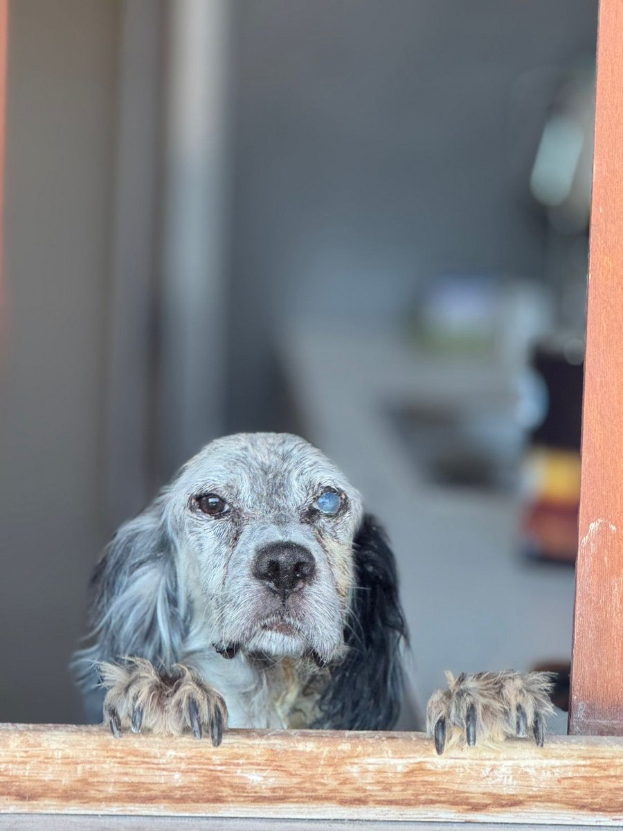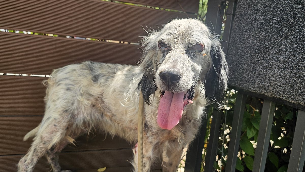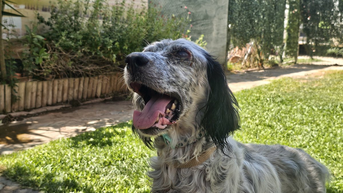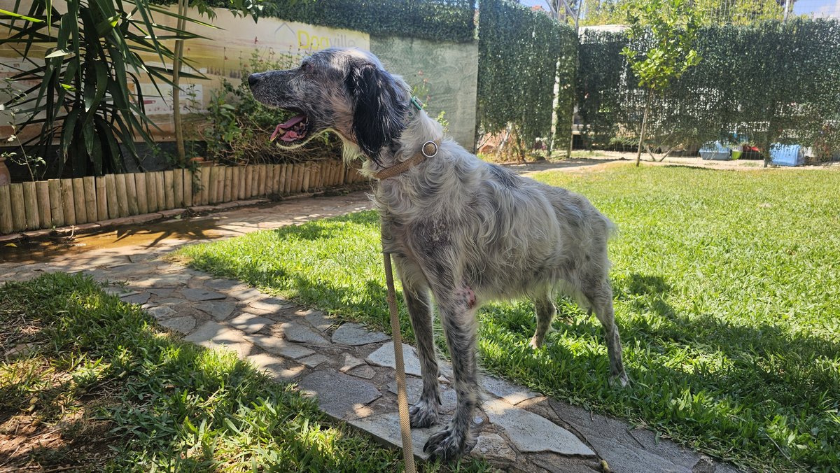 Ήρθε σε εμας ΓΕΜΑΤΗ τσιμπούρια και εξαθλιωμένη. Πάσχει από λεϊσμανίαση, και δυστυχώς έχει χάσει ήδη το ένα της μάτι. Τo άλλο πιθανότατα να σώζεται. Δεν βλέπει καλά, αλλά είναι ορεξατη, χαρούμενη και έχει όλα τα χαρακτηριστικά της φυλής της. Είναι αγαθή, σε εμπιστεύεται, περπαταει με την ουράτ ης κουνιστή και την μύτη κάτω, και είναι πάρα πολύ τρυφερή.