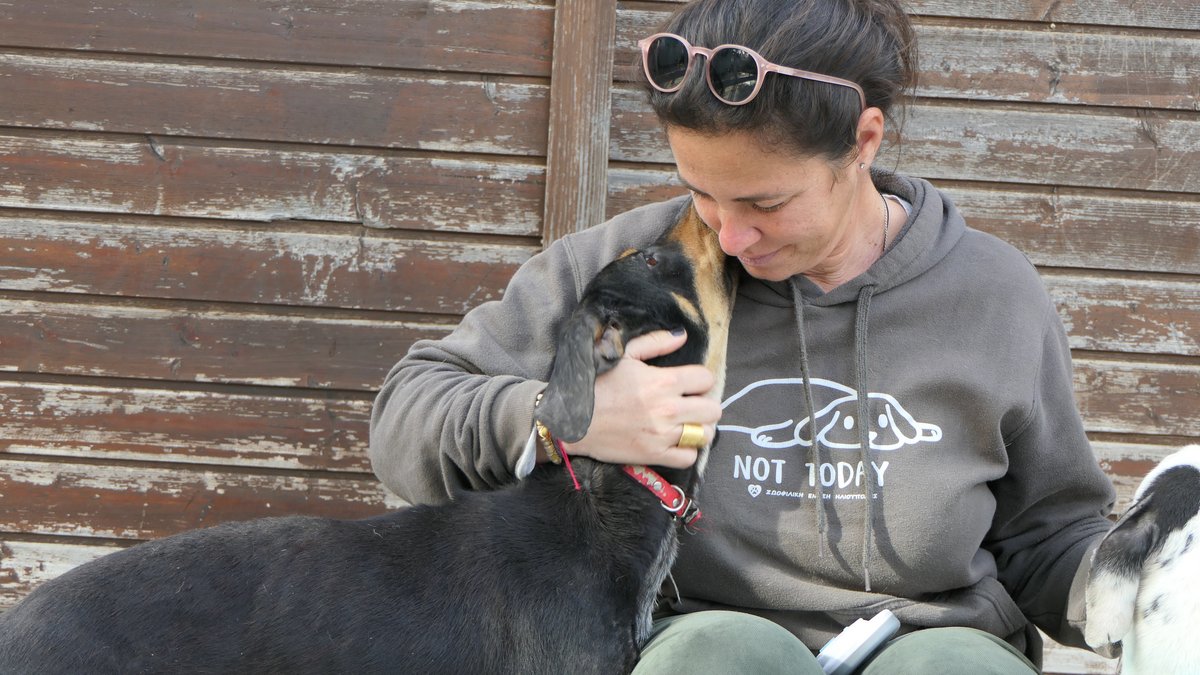 Την φέραμε από τι δηοτικό κυνοκομείο Τρίπολης, σκελετωμένη και νηστική. Ήταν σε ένα κλουβί στην νέα πτέρυγα του κυνοκομείου όπου δεν ταϊζόταν άγνωστο για πόσο καιρό. Ήταν θαύμα πώς στεκόταν όρθια, και πως έβαζε όλες τις δυνάμεις που της είχαν απομείνει για να μας δείξει την άδολη και ανιδιοτελή αγάπη της.
