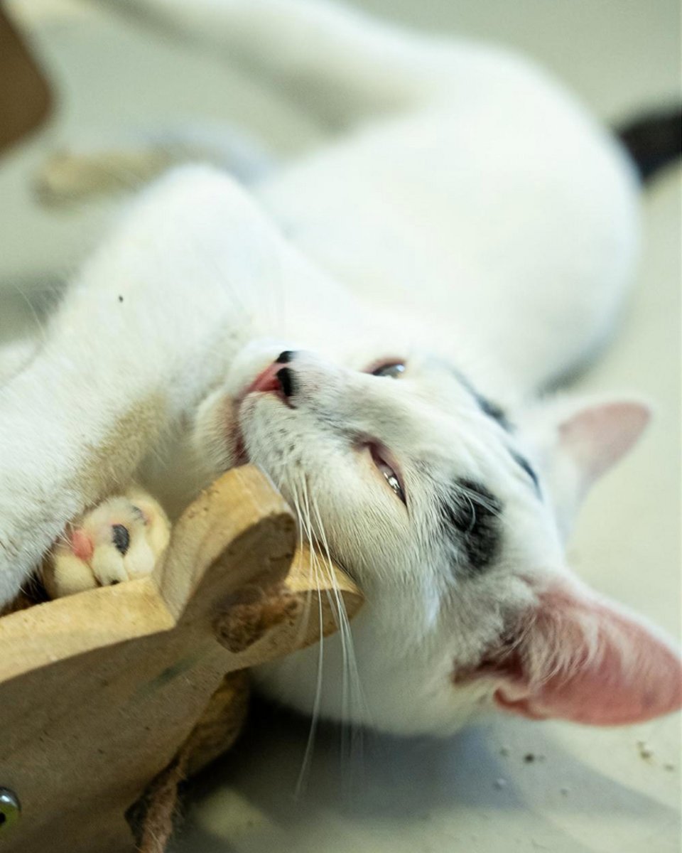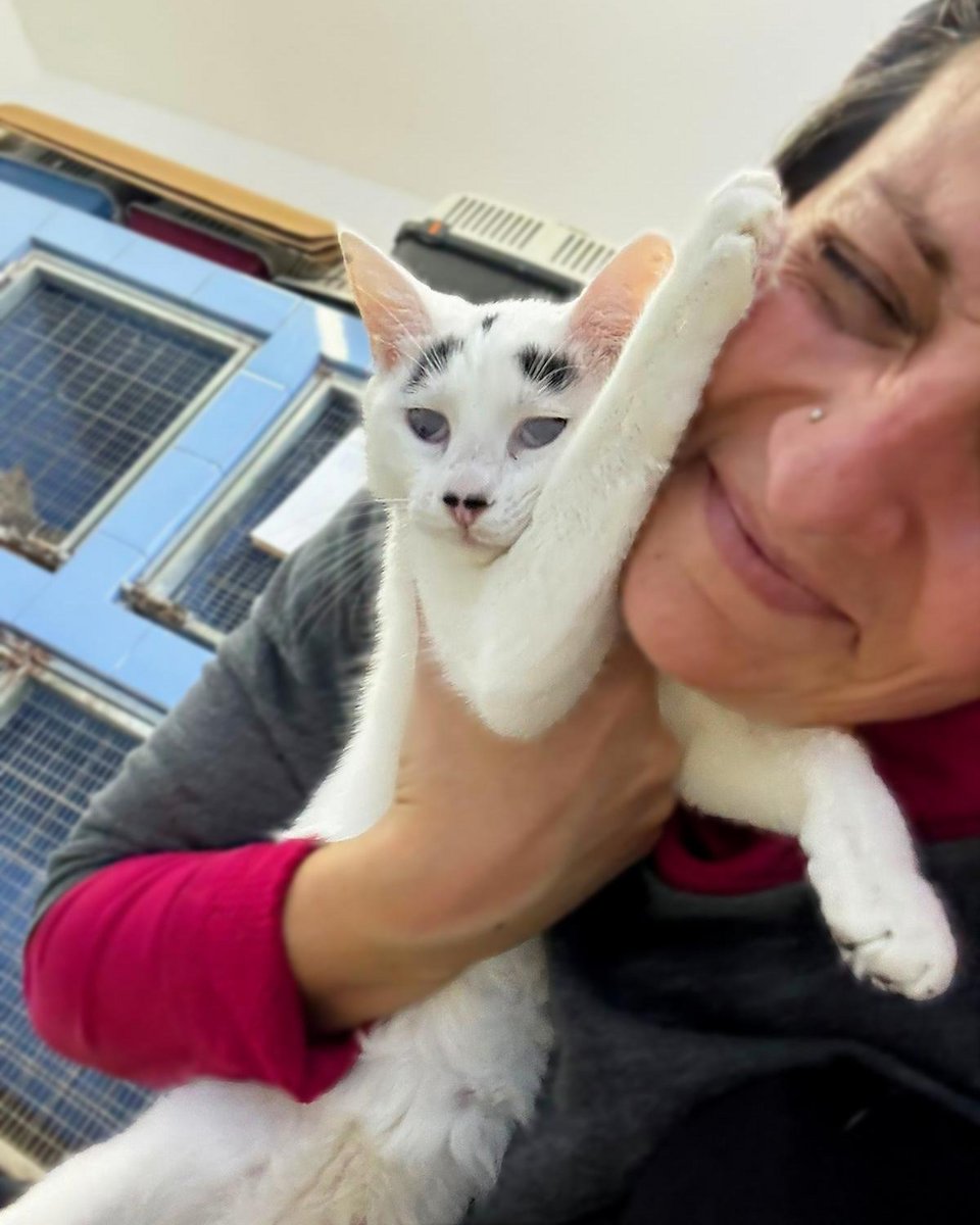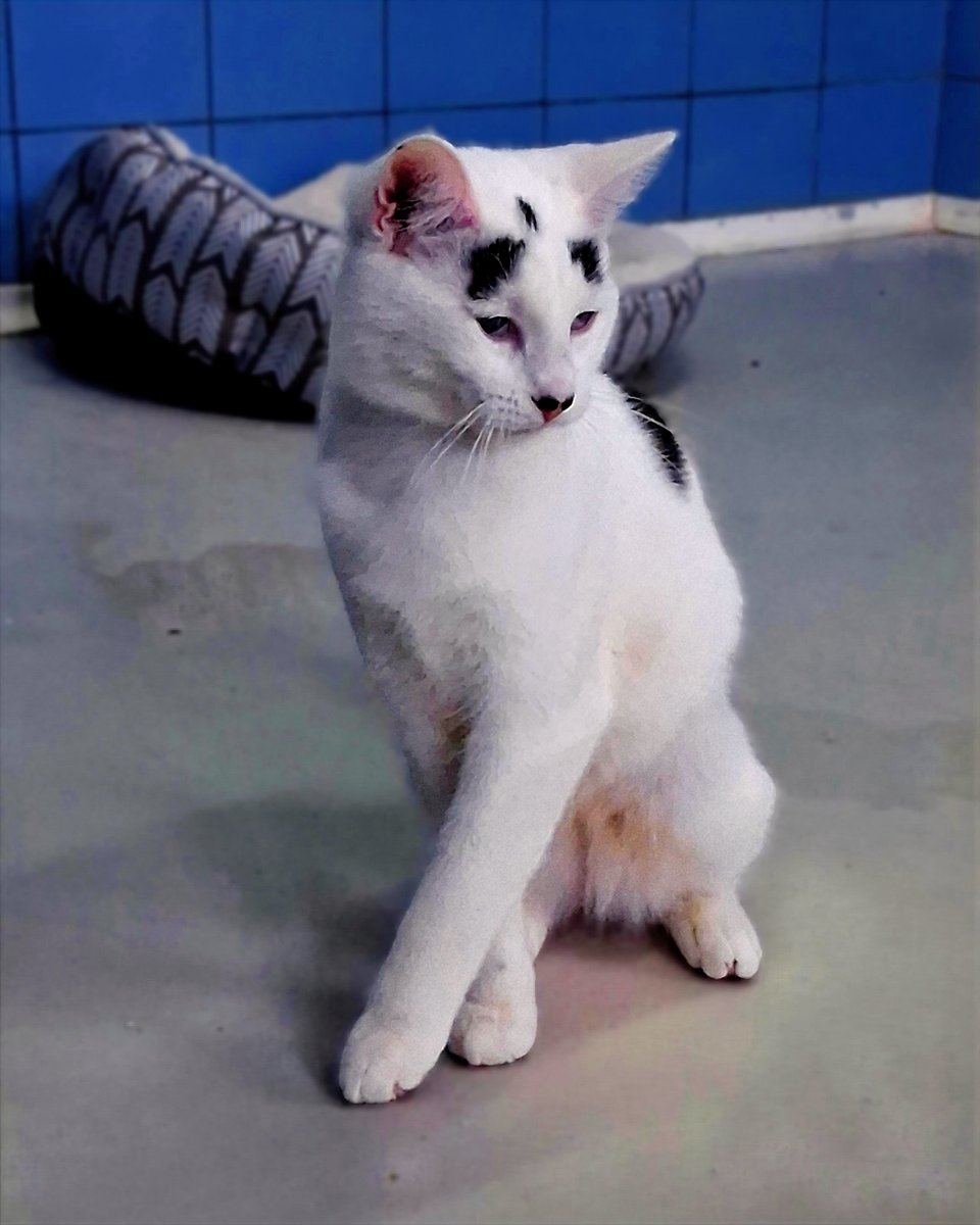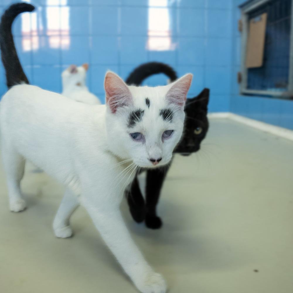 Η Μάφιν έχει πλάκα! Βασικά, κοιτάξτε τα σχέδια που έχουν σχηματιστεί στο κορμάκι της με μαύρο χρώμα, πάνω στην κατά τα άλλα κατάλευκη γούνα της. Κοιτάξτε την κατάμαυρη ουρά της, που είναι σαν να τη βούτηξε σε μπογιά. Κοιτάξτε τις πιτσιλιές πάνω από τη μύτη της, που μοιάζουν με το μουστάκι του Σαρλό. Κοιτάξτε τις μουτζούρες που μοιάζουν με φρύδια και της δίνουν μια μοναδική έκφραση. Τη Μάφιν δεν πρόκειται να την μπερδέψετε ποτέ με άλλη γάτα. Ήρθε μαζί με την αδερφή της τη Σου όταν ήταν ενός μηνός. Η Σου είχε σοβαρό πρόβλημα στα μάτια της και αναγκαστήκαμε να της τα αφαιρέσουμε, όμως η Μάφιν δεν ήταν σε τόσο κακή κατάσταση. Βέβαια, έχει αρκετά μειωμένη όραση – μάλλον βλέπει σκιές και αντιλαμβάνεται τη φωτεινότητα, όμως αυτό δε θα το είχαμε καταλάβει αν δεν μας το είχε πει ο κτηνίατρος. Η Μάφιν είναι ένα γατάκι μέσα στη χαρά. Σκαρφαλώνει πάνω σου, διεκδικώντας αγκαλιές και παιχνίδια. Θέλει επαφή, θέλει δραστηριότητα, θέλει χάδια. Αλλά κυρίως θέλει μια οικογένεια να τη δεχτεί, να την αγαπήσει και να την κάνει μέλος της. Το Μαφινάκι μας είναι ένα ξεχωριστό πλάσμα που του αξίζει να ζήσει ευτυχισμένο.