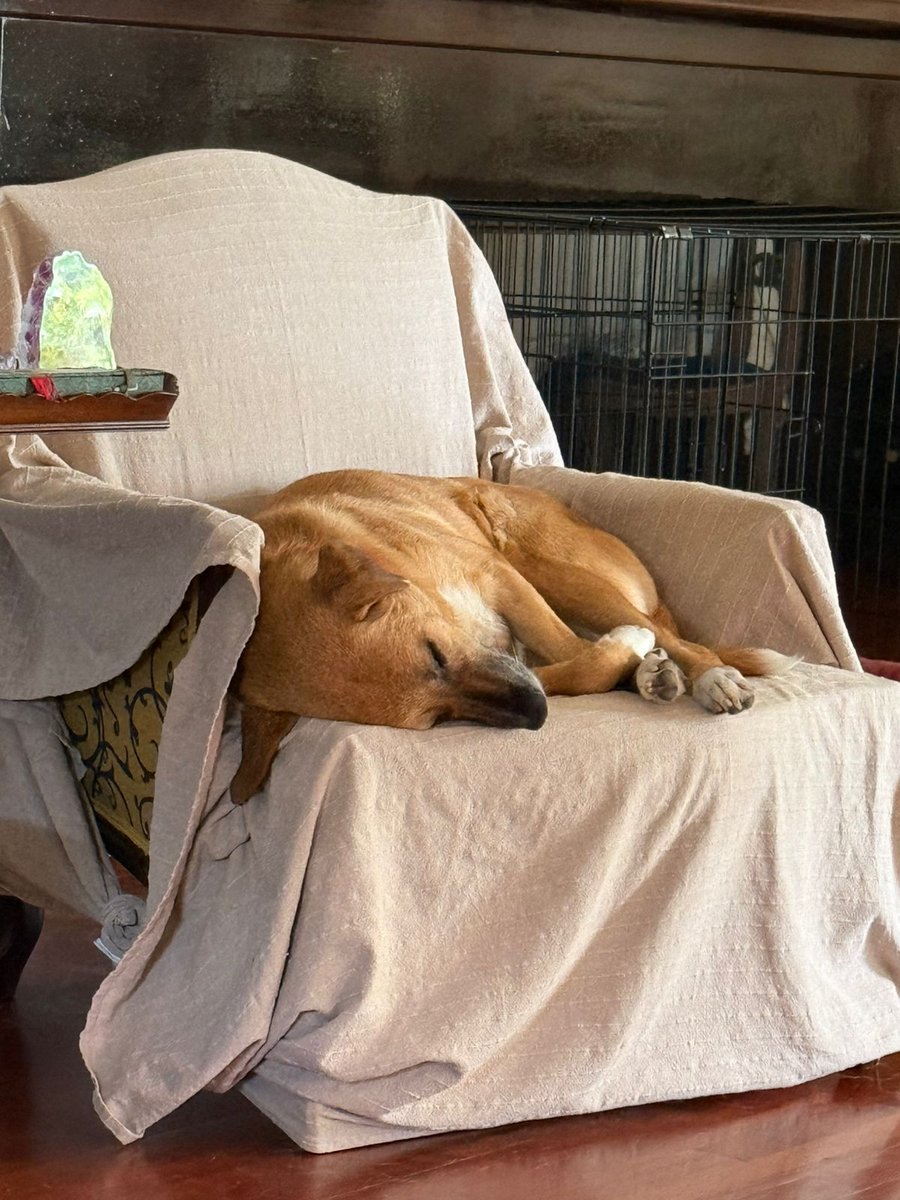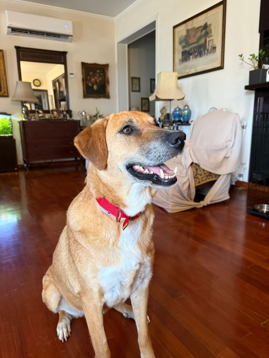 Πλέον έχει έρθει στο καταφύγιο, όπου συνεχίζει να είναι άψογη. Βγαίνει βόλτα σχεδόν κάθε εβδομάδα με τους εθελοντές και είναι τέλεια. Δεν τραβάει στο λουρι, είναι υπάκουη και υπέροχη. Έξω στην πόλη είναι λίγο πιο διστακτική, αλλά πάει την βόλτα της άνετα, παέι τουαλέτα, και κάθε φορά είναι πιο άνετη και πολύ πιο συνεργάσιμη.