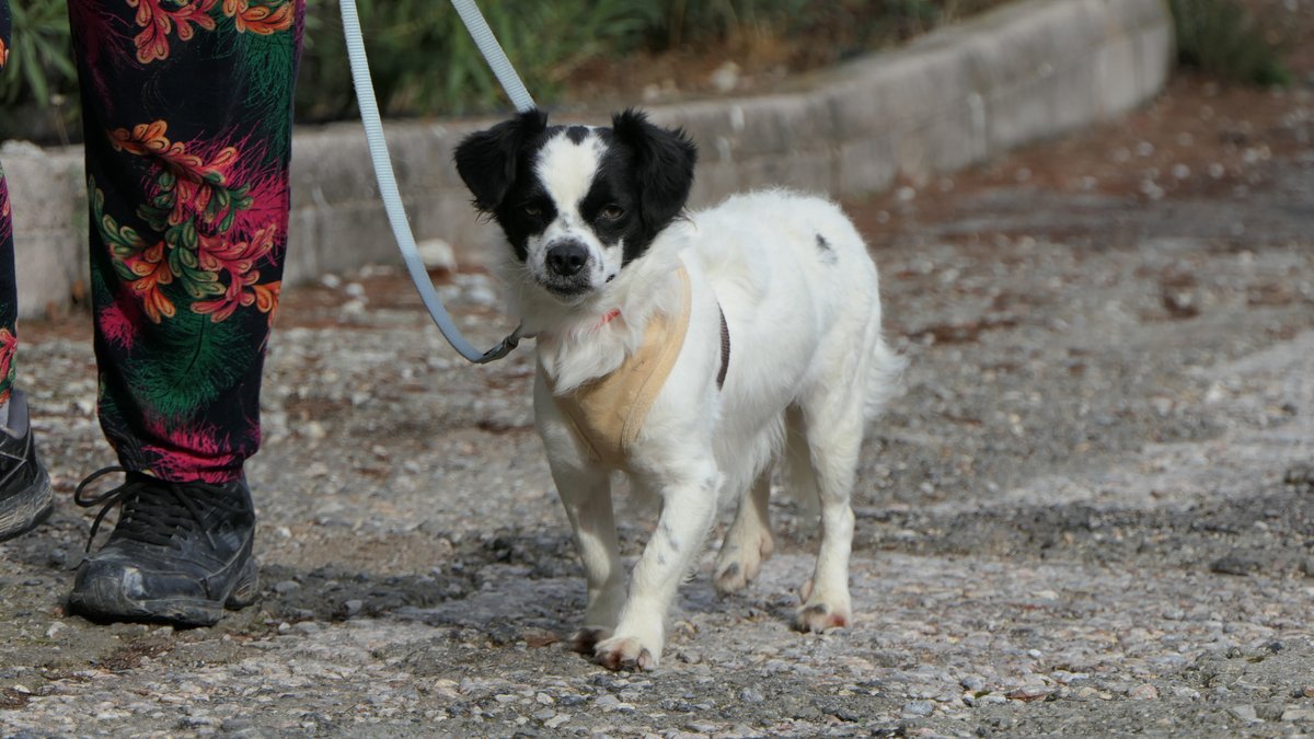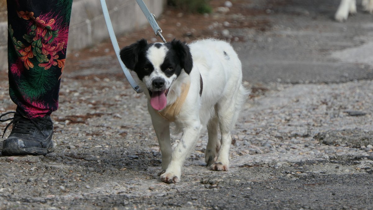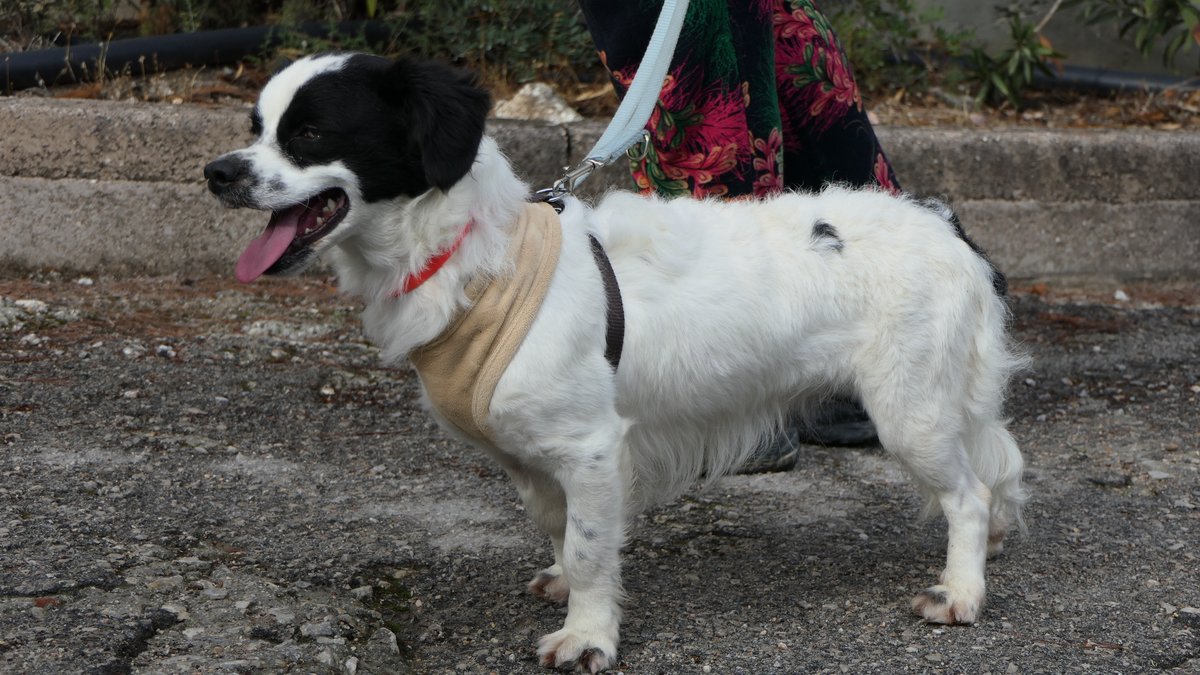 Carmela, who is short like a little lump, with sheepdog-like fur and a Chihuahua's face, is quite fearful. She doesn’t approach easily, she goes for walks timidly around the yard, looking to stick close to the one sister she still trusts since all her other siblings have been adopted, and she avoids humans as much as she can.