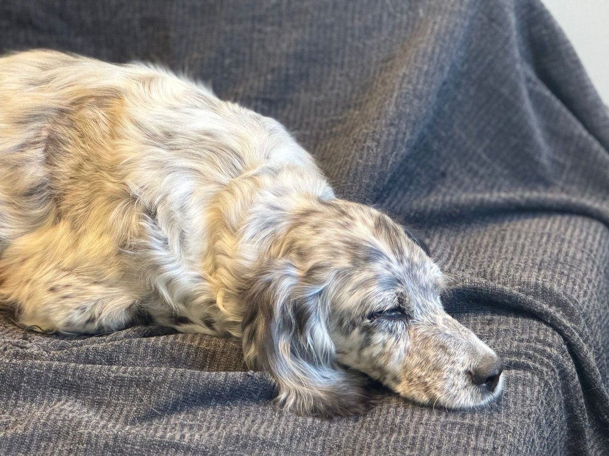 Today, she is a gentle, happy, and energetic setter who loves walks, moves with confidence, and enjoys the life around her. She is social and loves affection.