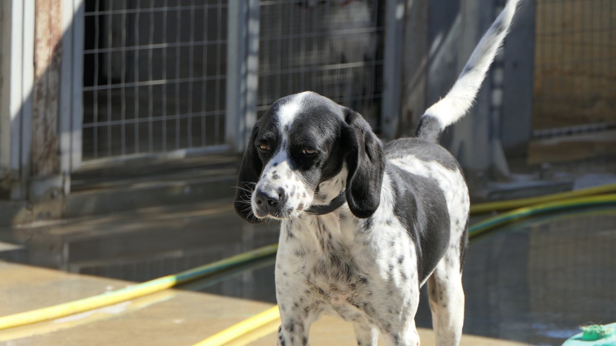It is a dog really beautiful, very good, a little hesitant and scared because as a hound obviously it has not been properly socialized, but with interest in exploring.