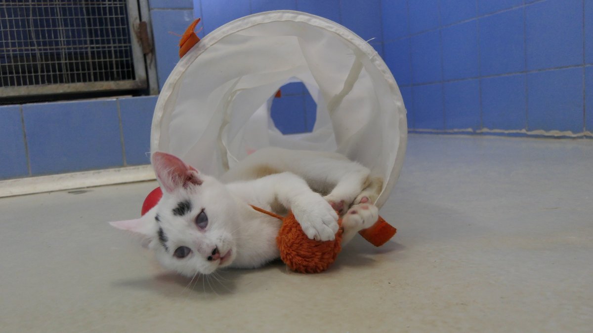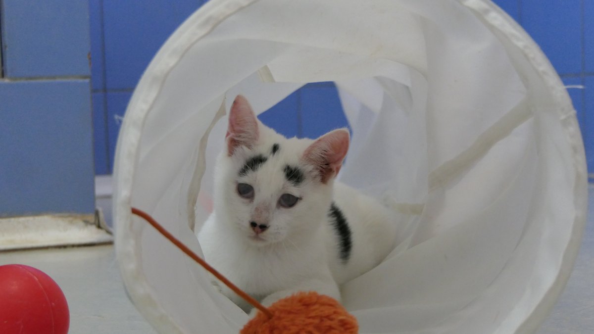 He came to us from the street when he was one month old, along with his sister. Muffin is a little hesitant at first, but as a baby, you can pick him up, and she will immediately trust you.