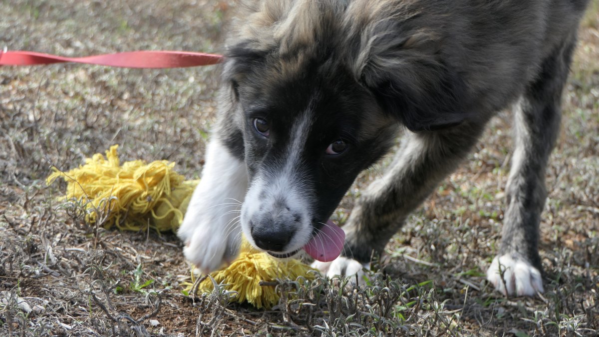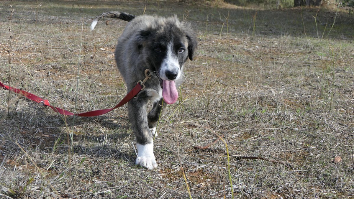He goes for a walk, cheerfully and hoping, smells the flowers and then tries to eat them, takes his toy in his mouth and walks with it, and if he concentrates, he does the sit command, and gets ab treat for it.