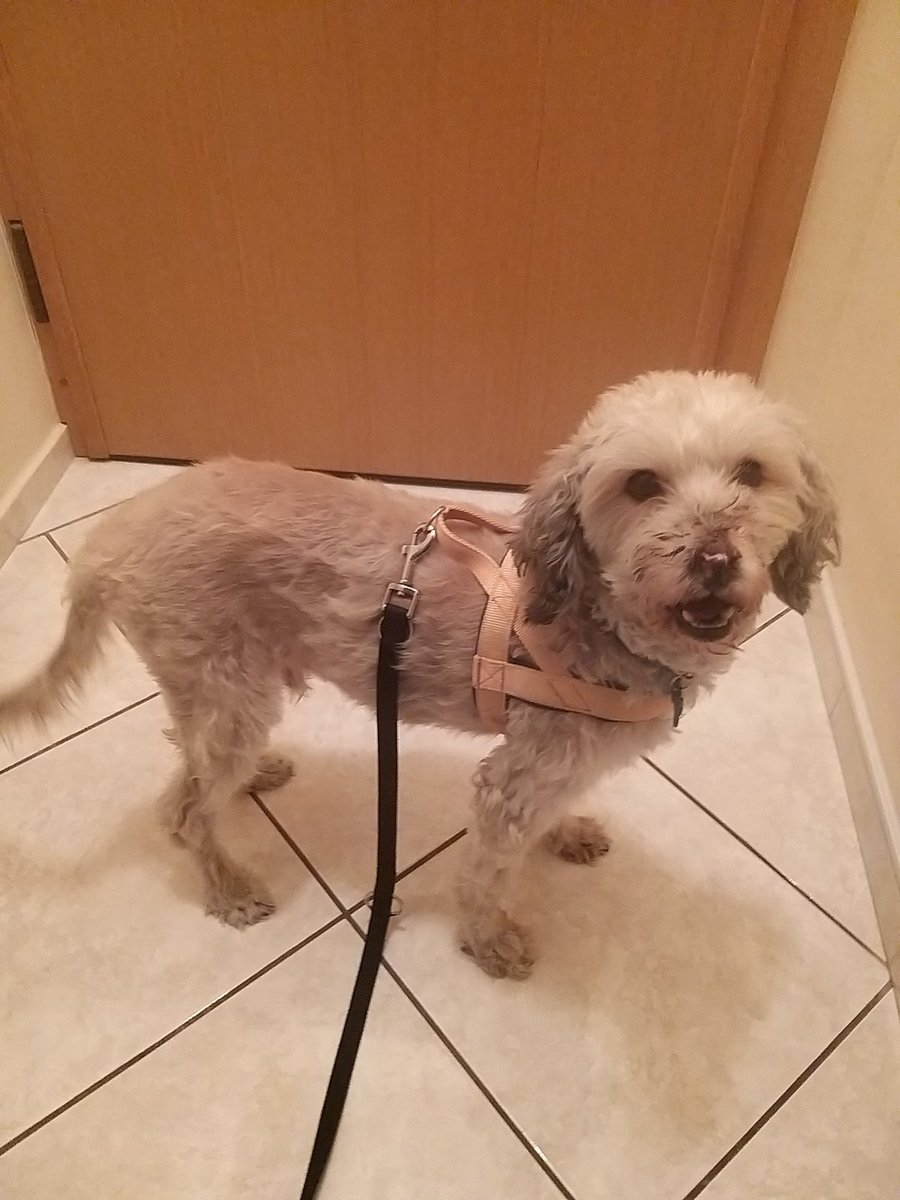 In absolutely nothing does this affect him, because he is an incredibly good dog. He's good at the car, good at the doctor, good at walking, good at all people and other dogs.