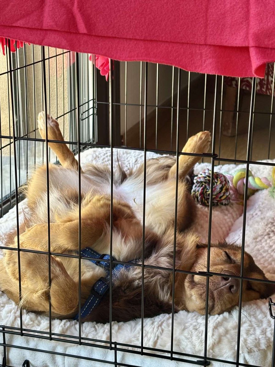 Her mom is a three-color and small seterine, and her dad is milk chocolate.