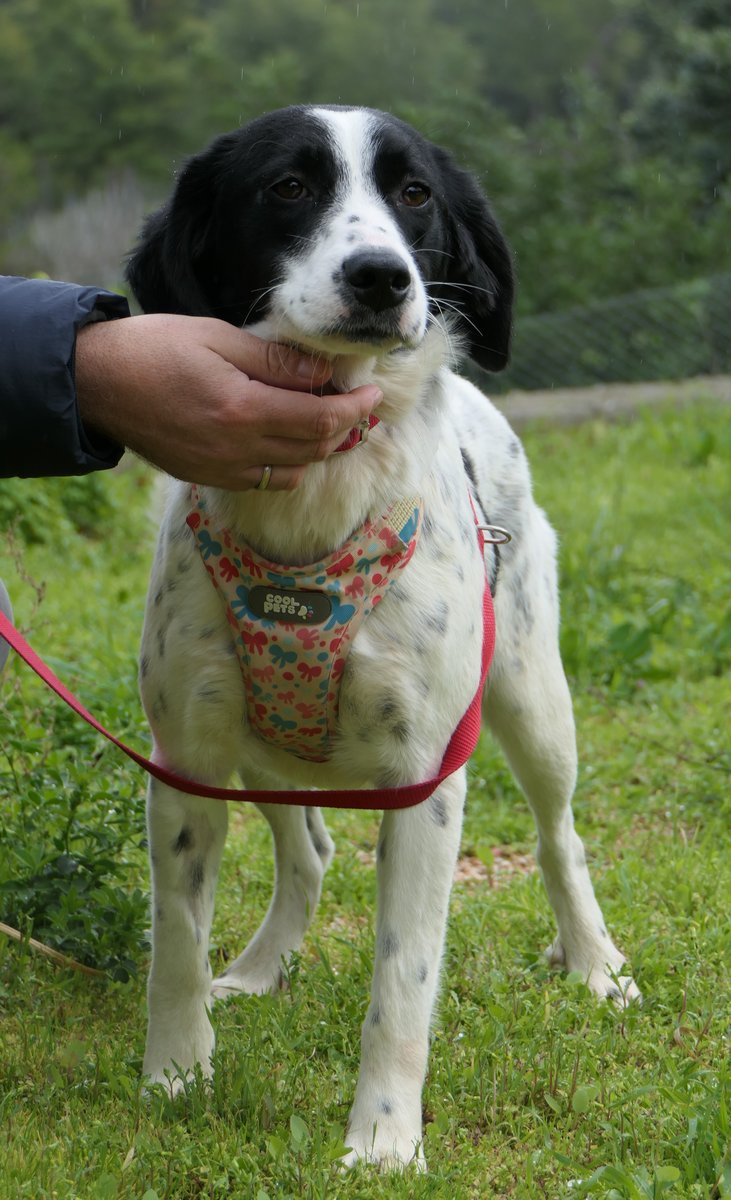 In character he looks very much like a Setter, maybe not so much in appearance, but certainly in character. She enjoys the walk a lot, she smells, she pulls a little, and she has the enthusiasm to go out and discover smells, and when she is indoors with people all her attention is on them, and she craves caresses and attention.